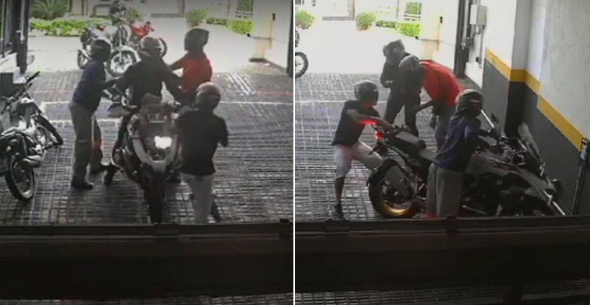 Imagens de câmeras de segurança de um prédio localizado no Campo Belo, na Zona Sul de São Paulo, registraram o momento em que um motociclista foi rendido por criminosos armados, que usavam capacetes. Eles obrigaram a vítima a descer da motocicleta de luxo e fugiram levando o veículo. Até a tarde deste domingo (23), nenhum deles tinha sido preso.