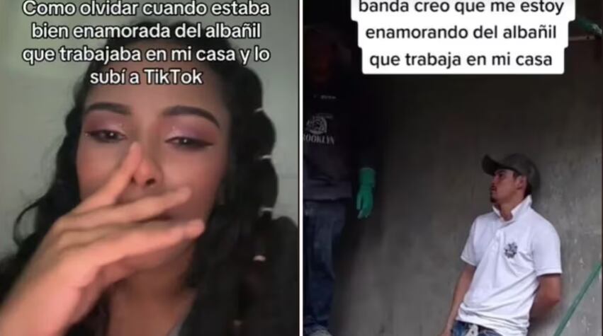 Através de um primeiro vídeo, ela confessou seu amor pelo pedreiro, que naquele momento estava desprevenido durante uma pausa no trabalho.